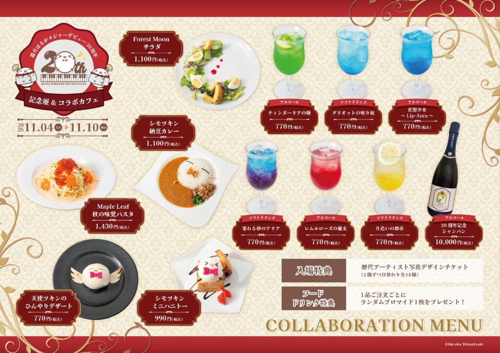 霜月はるかメジャーデビュー20周年を記念して、これまで活動で制作・着用してきた歴代の衣装や小物、ライブ写真を展示する初の衣装展と、オリジナルメニューを楽しめるコラボカフェが同時開催。